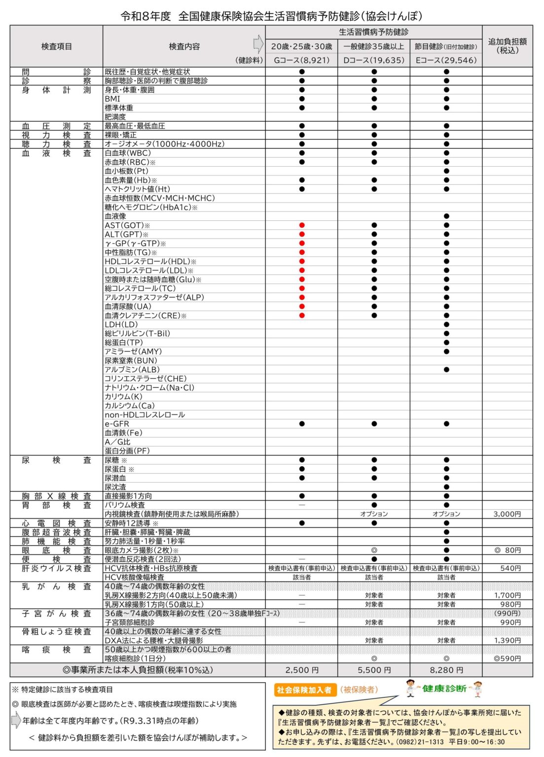 ※協会けんぽの生活習慣病予防健診は、年齢により検診内容が異なります。事業所に届く「対象者一覧」をご確認下さい。